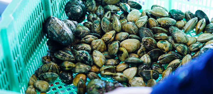 波が穏やかで海底が砂質である大村湾では、おいしナマコやシャコ、サザエやカキなどがとれます。