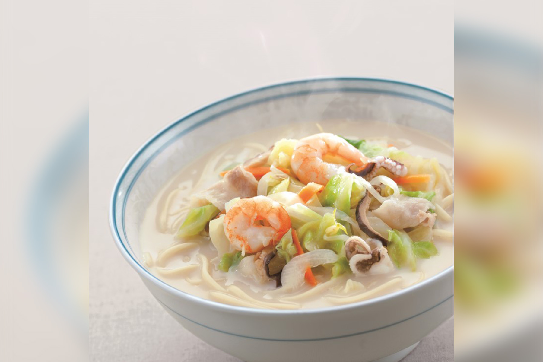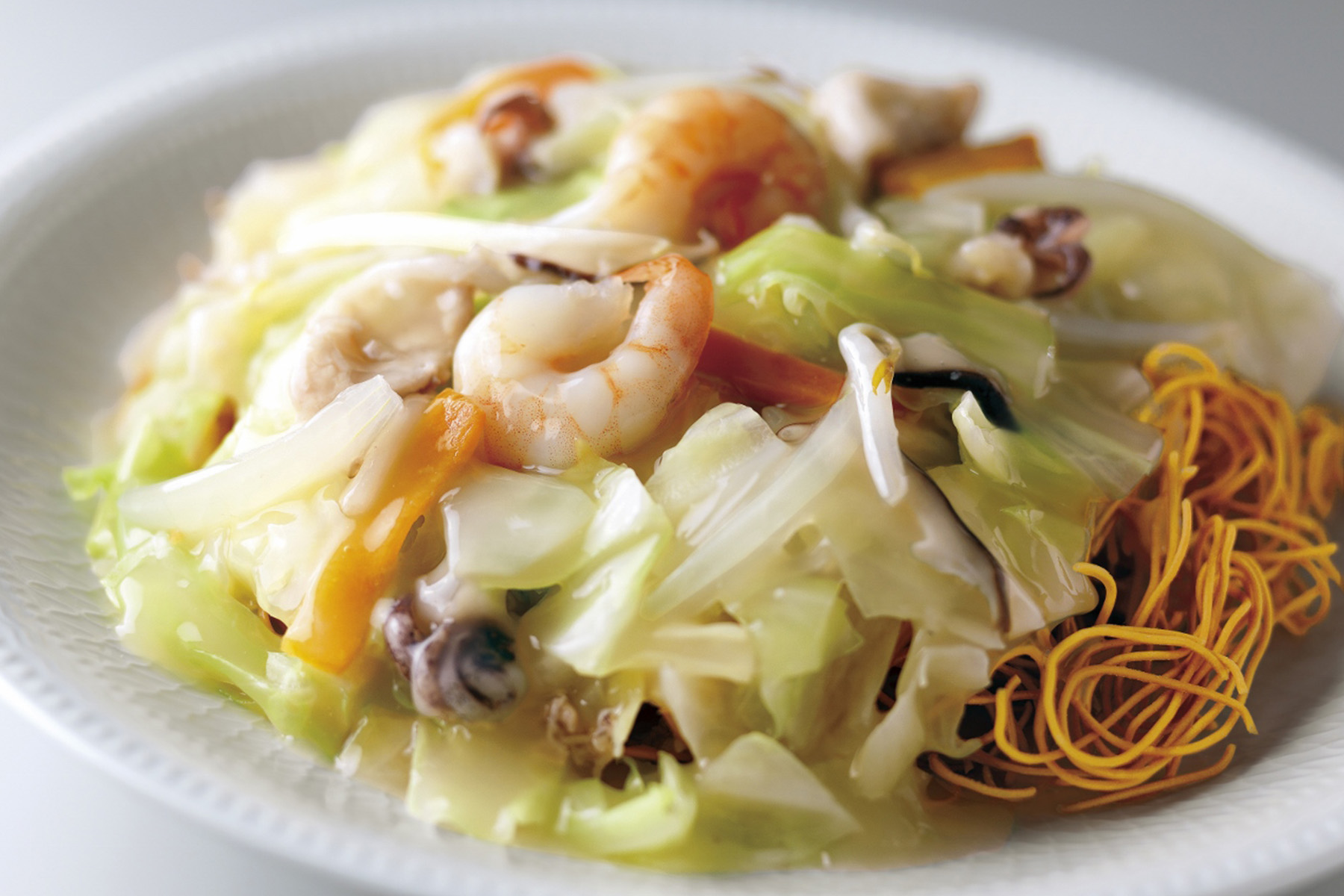 本場長崎のコクのあるスープとシャキシャキ食感の野菜が入った『長崎ちゃんぽん』と、パリパリ揚麺にトロリとしたあんかけが絶妙な『長崎皿うどん』。厳選された素材を使用し、丹念に仕上げたこだわりのちゃんぽんと皿うどんのセットです。